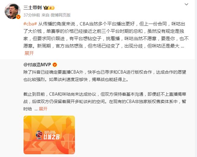 在过往咪咕曾经与CBA签约5年20亿元的独播合同,但根据此前报道咪咕要求新续约合同变为5年10亿元,且咪咕要求“独播权”,却并未获得CBA的同意。